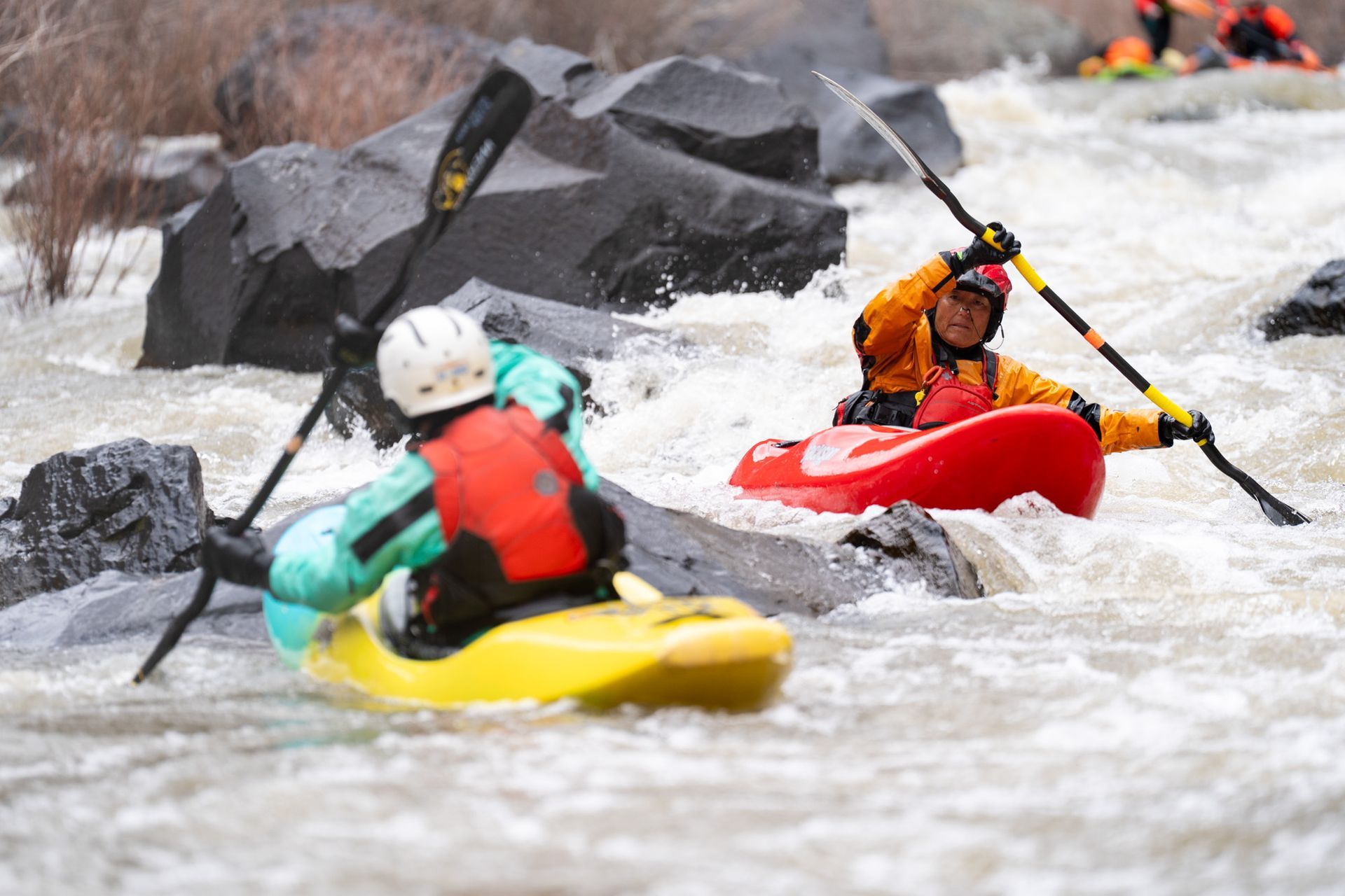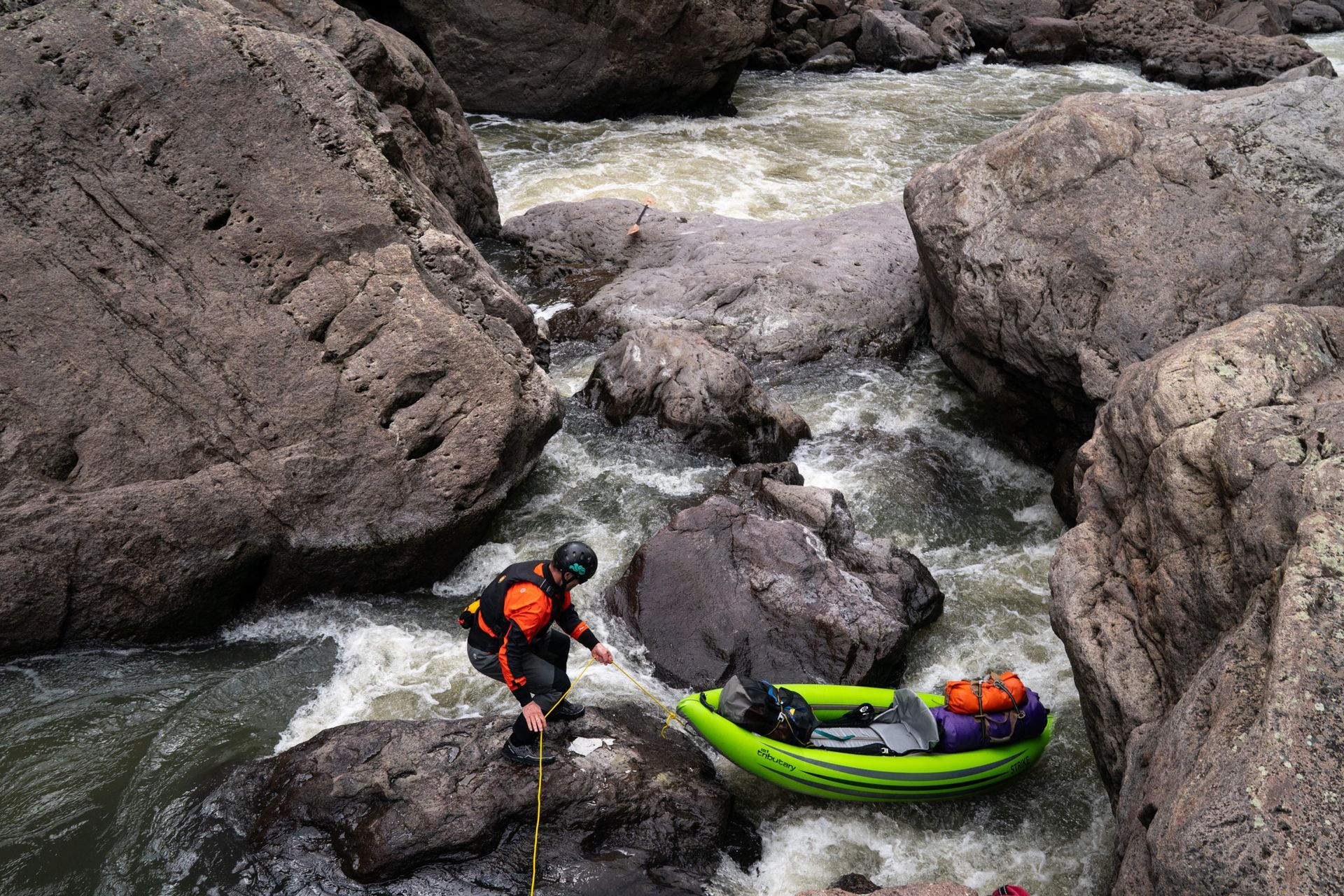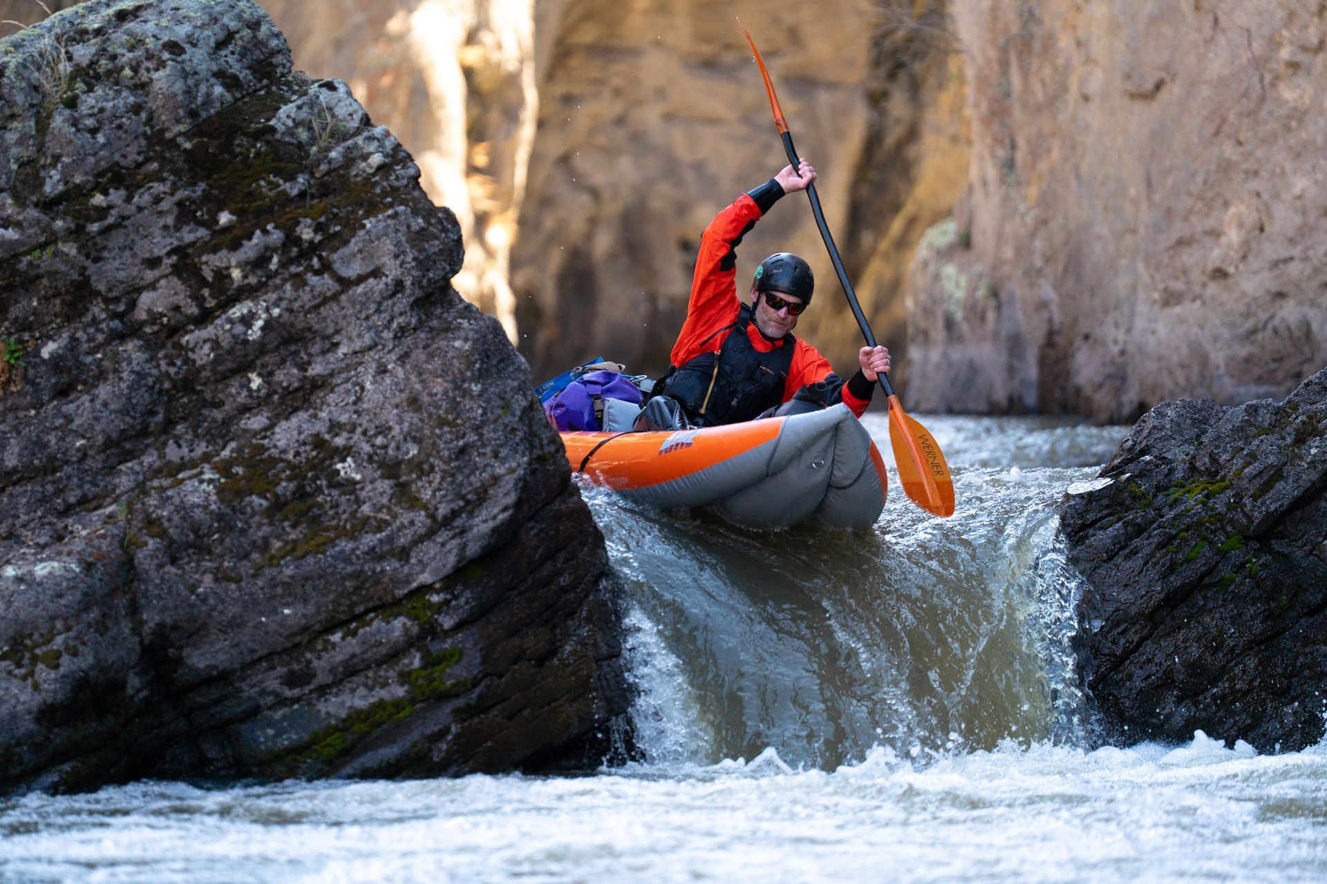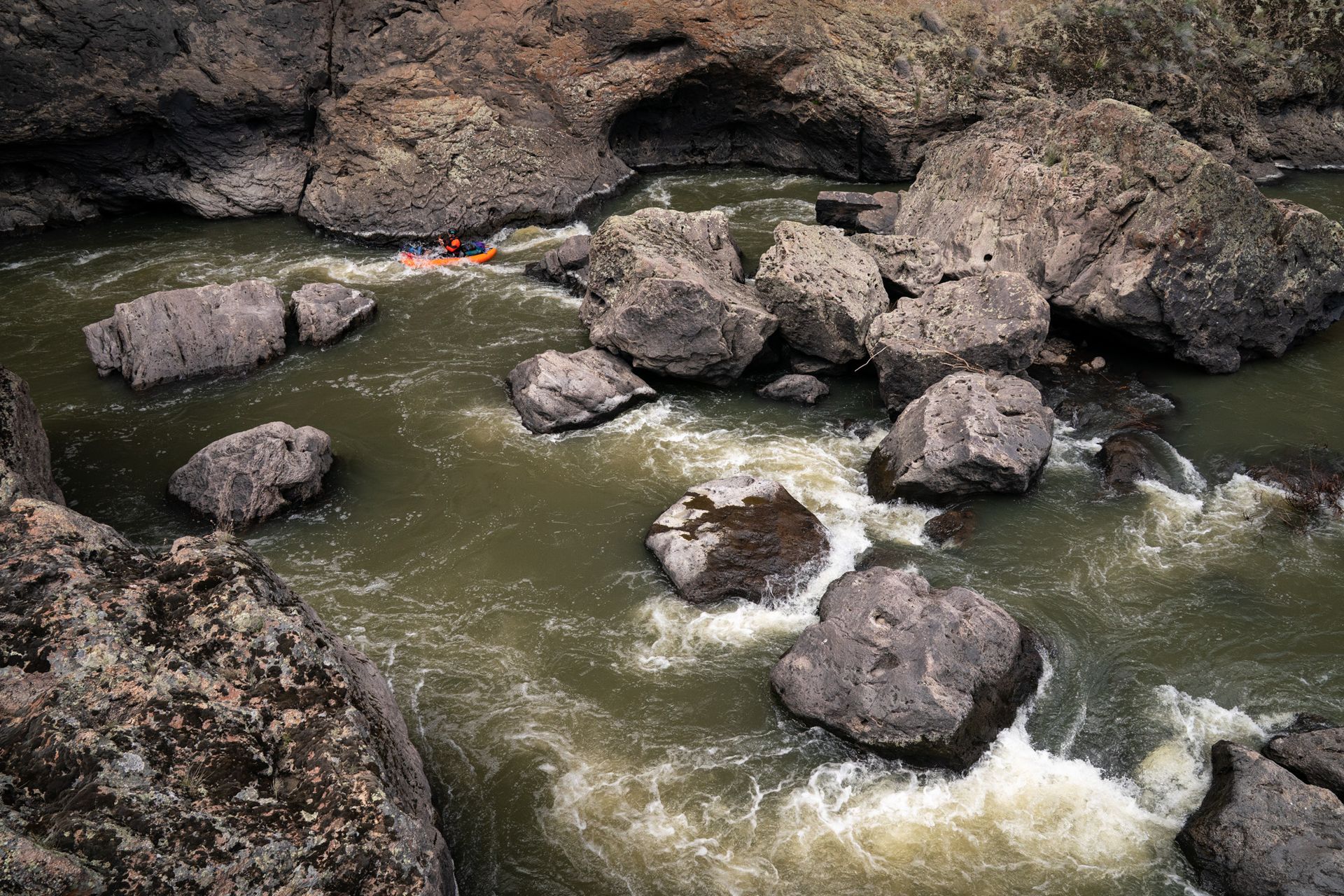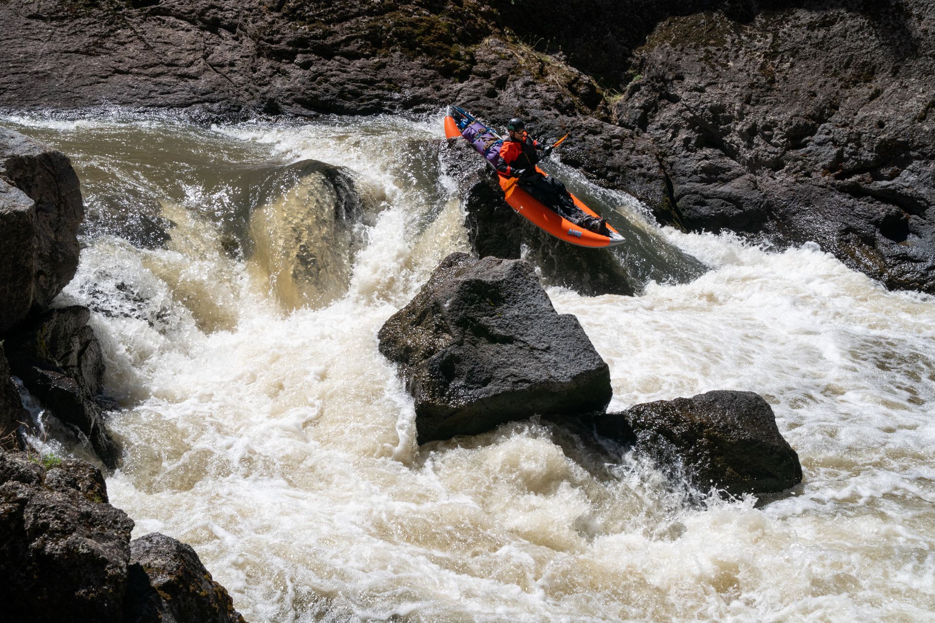 We bumped our way down the rapids with one serious mishap-a hardshell kayaker following an IK too close got pinned sideways between two rocks. What could have been a very bad situation worked itself out and no one was hurt. Rafts would have never made it down the initial stretch of whitewater at these flows; had we taken even small rafts, we would have been struggling to pull them over the exposed rocks and would have likely punctured tubes.