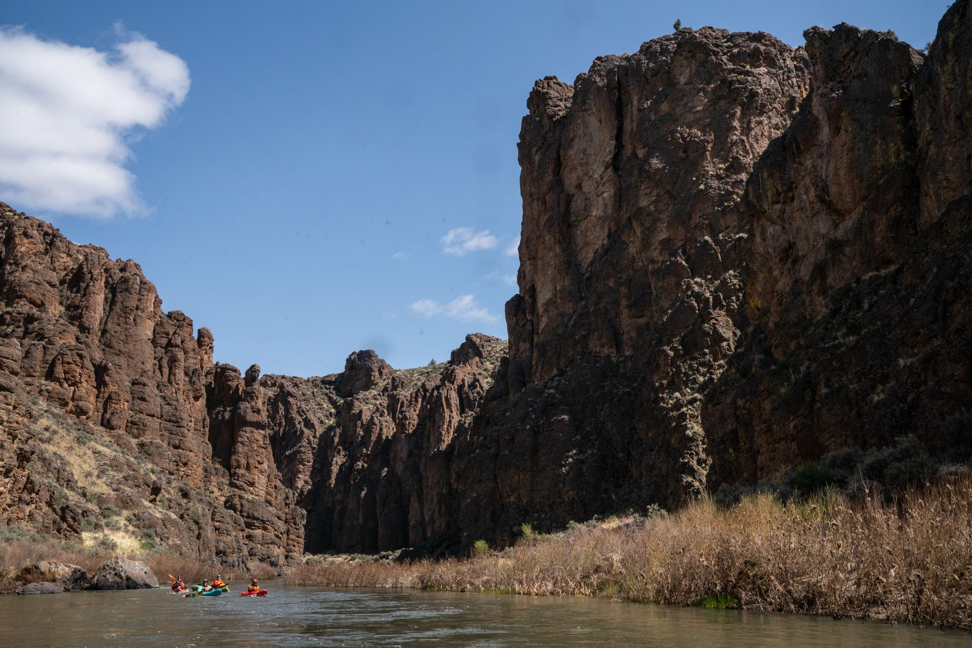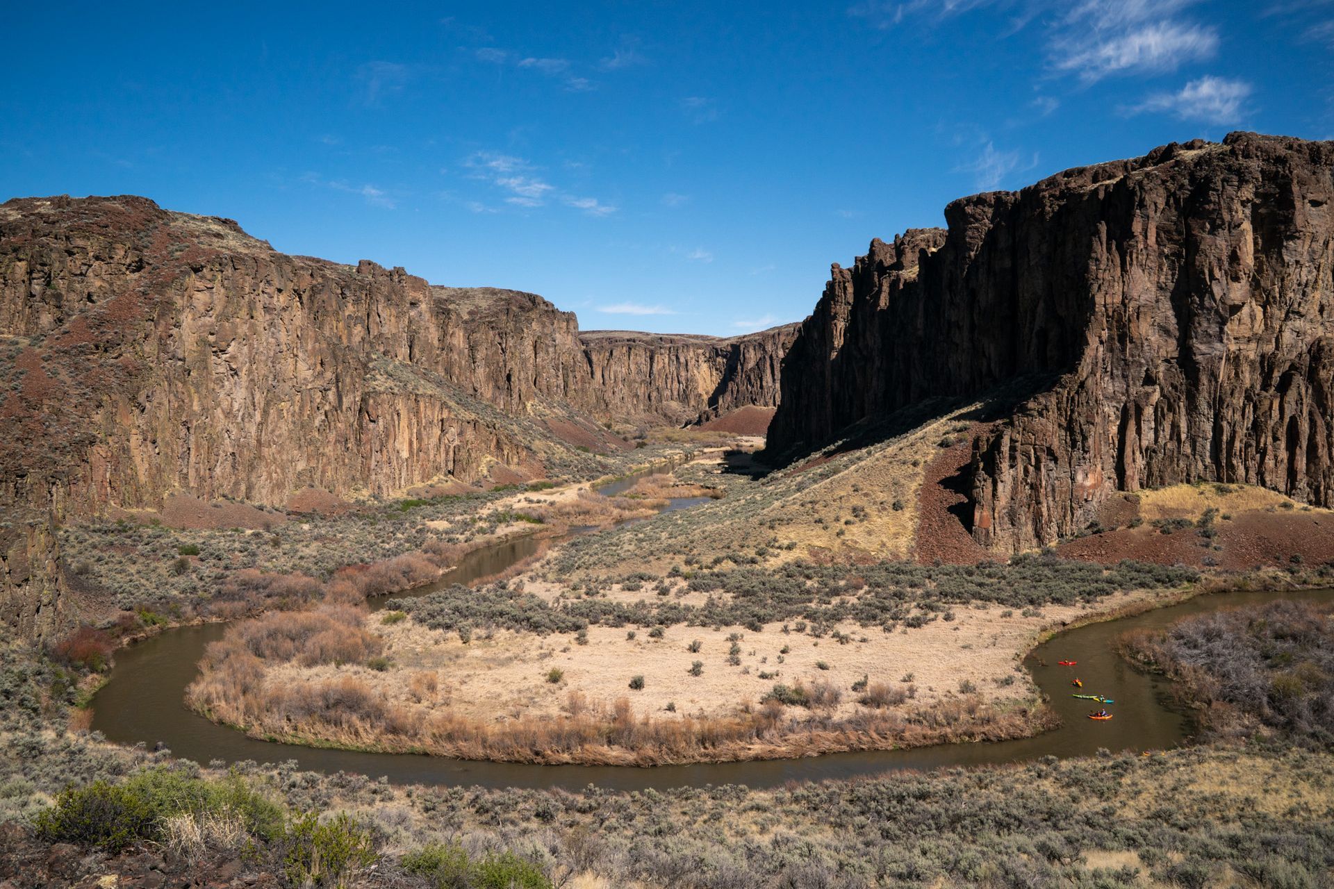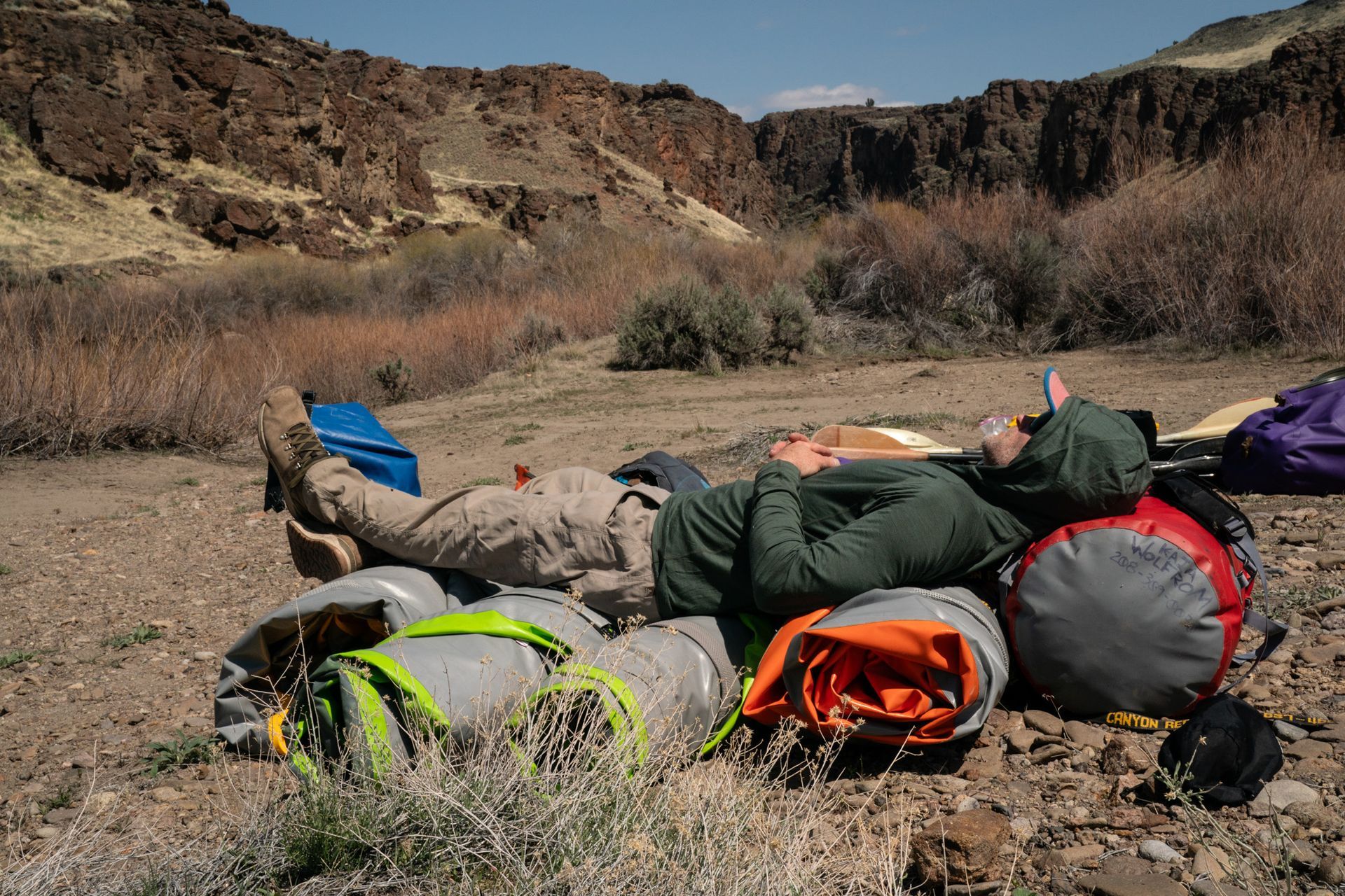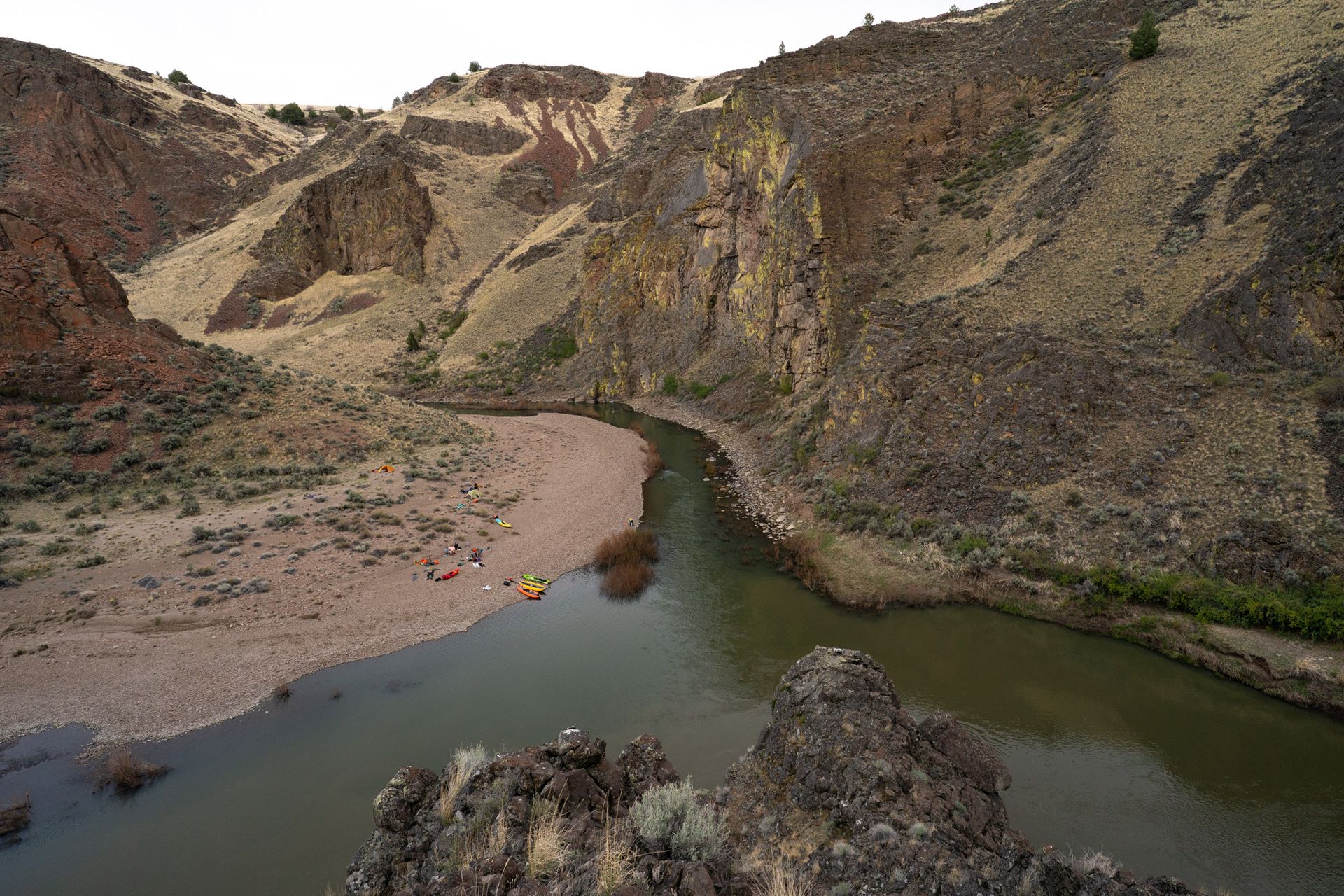 Our second to last day involved some fun boulder gardens with rocks that we easily cruised around, but wondered what they'd be like at the 5000 to 9000 cfs level which some folks have run this section of river. We approached Owyhee falls with concern and trepidation but portaged it without any issue. The canyons on day four were some of the most beautiful I've paddled through and was thankful to have had the low water to peacefully float through them without stress or concern. This day was long thanks to the portage and we were all eager to set up camp. A few in our group tried to pull over early, but, we pushed on until we found a nice beach and took an evening hike up to the canyon rim.
