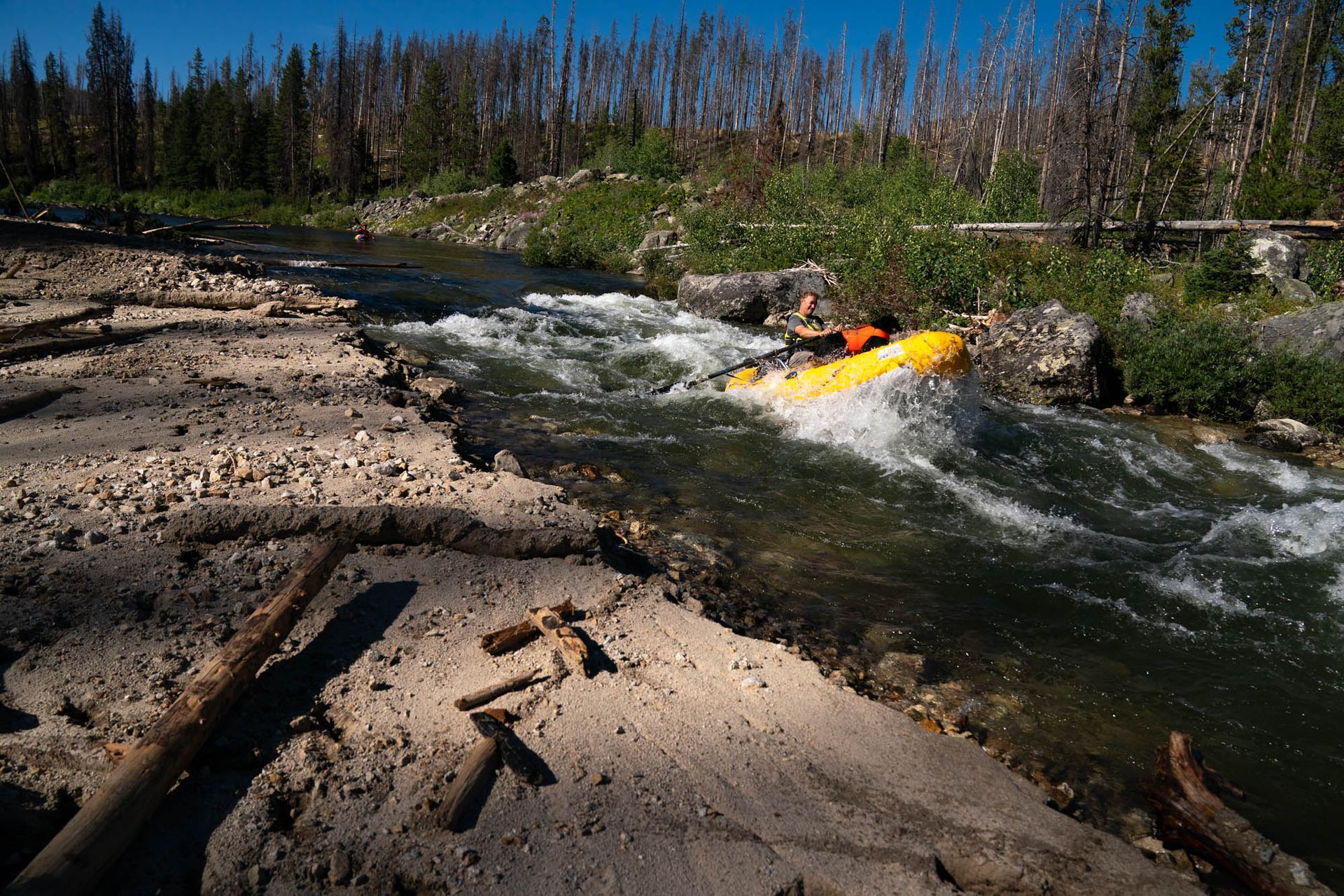 This August, a week before my launch date another round of heavy rains saturated the unstable soils above the river causing even larger blowouts than in 2022. The river closed again, however, I wasn't ready to concede that running the Middle Fork off the top was out of the question. I wanted to see these massive landslides. I wanted to manage portaging around them. I wanted to scout the river like it was a new river and my first time down. I did not see a reason to not allow my group of experienced rafters and kayakers to attempt the adventure.
