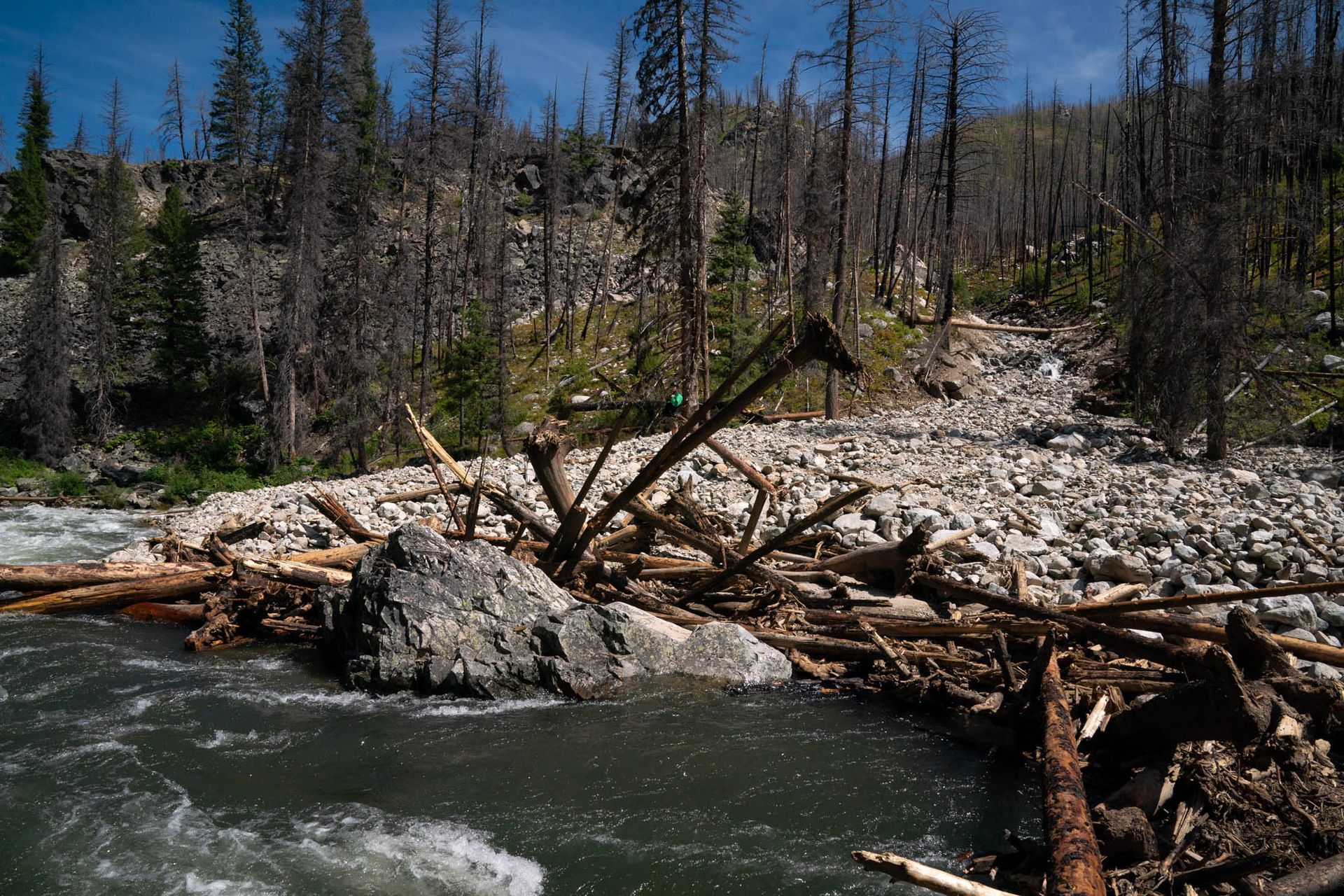 Come August, 2022, the morning before my launch date, as I did my final sweep through my house to make sure everything was in order, with friends in the driveway stoked to be heading out to float the Middle Fork--my cell phone rang. On the line was the river ranger informing me that the previous night torrential rain storms saturated the creeks, gullies, and slopes above the upper river that had burned the year previous--causing massive blowouts where tons of gravel, mud, trees, and boulders were flushed into the riverbed choking it, redirecting flows into new and unknown rapids. Like 2021, the river was closed again so rangers could assess the situation and my permit was rolled over to 2023.